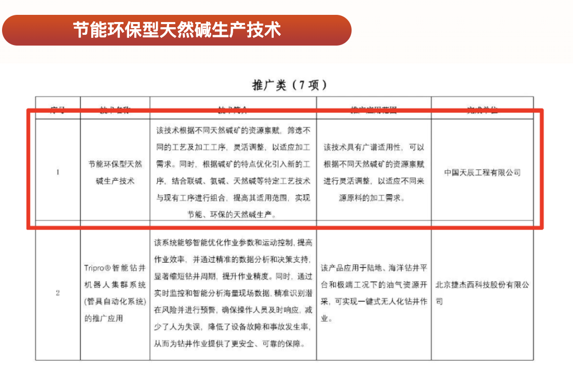 近日,中国石油和化学工业联合会发布《2025年度中国石油和化学工业联合会科技指导计划》,中国化学天辰公司自主研发的“节能环保型天然碱生产技术”与“丁二烯直接氰化法己二腈技术”成功入选推广类项目。该技术通过...